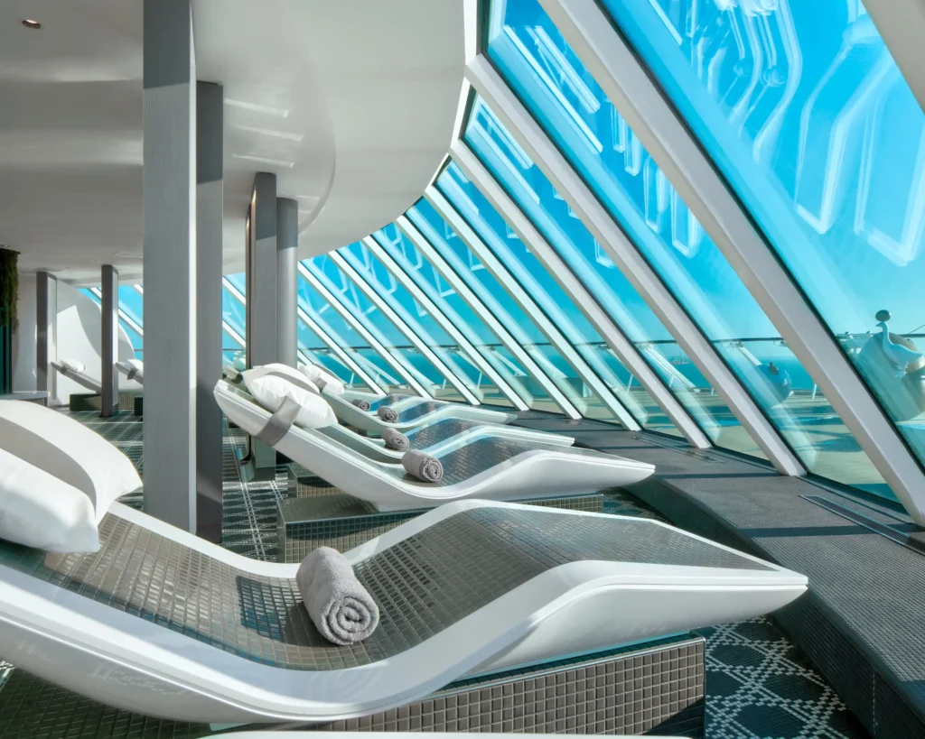 Norwegian Cruise Line: A vibrant, resort-style line offering diverse entertainment and a casual, “freestyle” cruising approach. The Mandara Spa features expansive thermal suites, salt therapy rooms, and ocean-view treatment spaces.