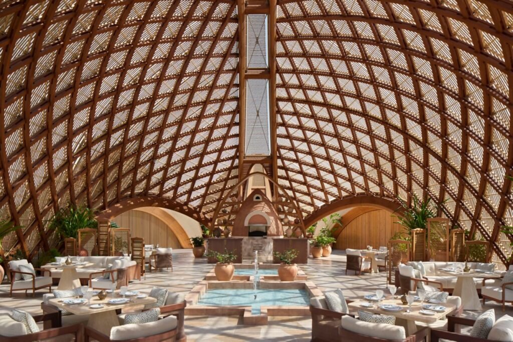 Foster + Partners designed the villas with soft curves and locally influenced details, giving them a futuristic feel that still works with the landscape. Dining is overseen by chef Lucas Julien-Vauzelle and leans toward French technique paired with regional ingredients. Expect dishes like Red Sea tuna alongside excellent Arabic breads.